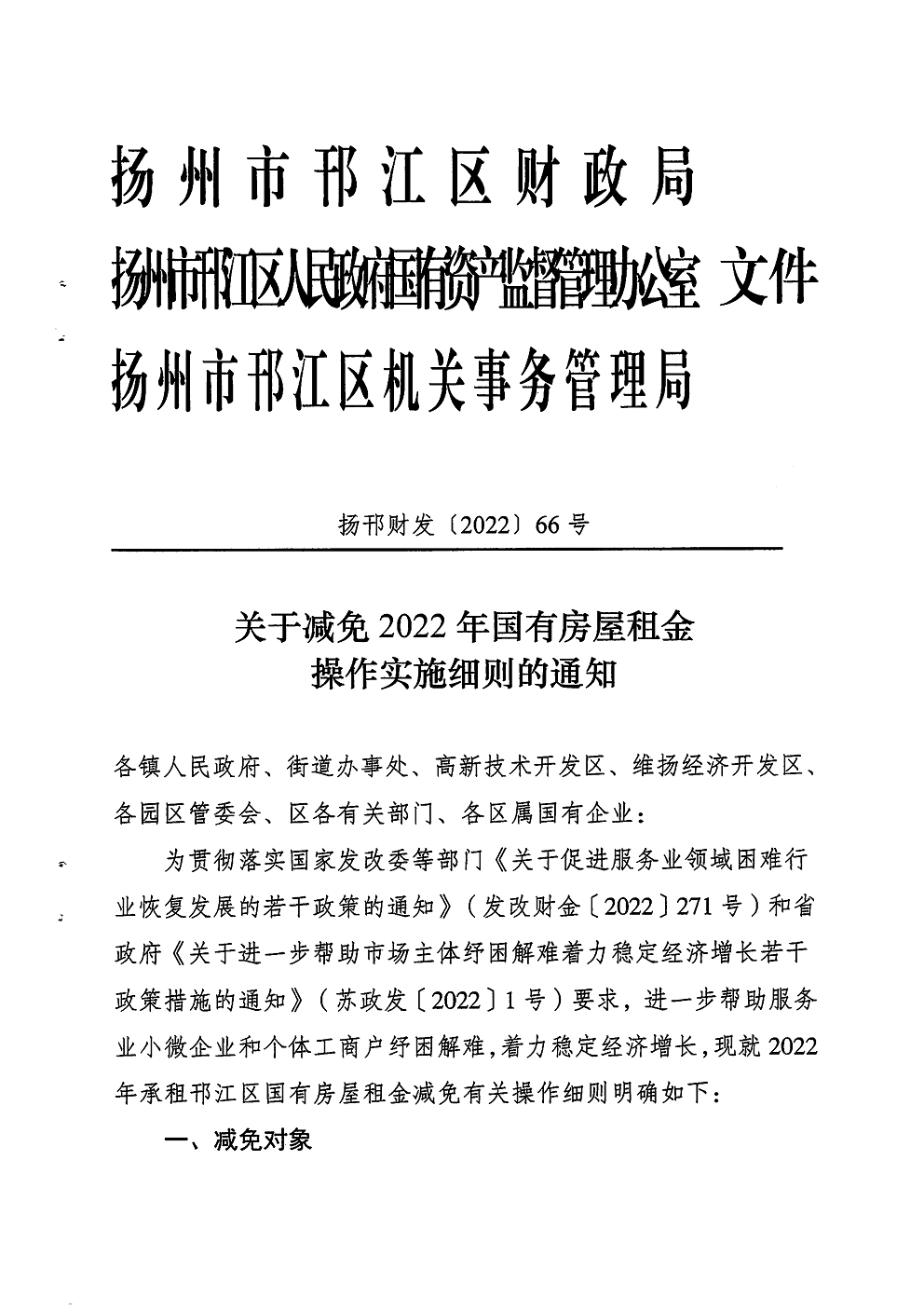 關(guān)于減免2022年國有房屋租金操作實施細則的通知